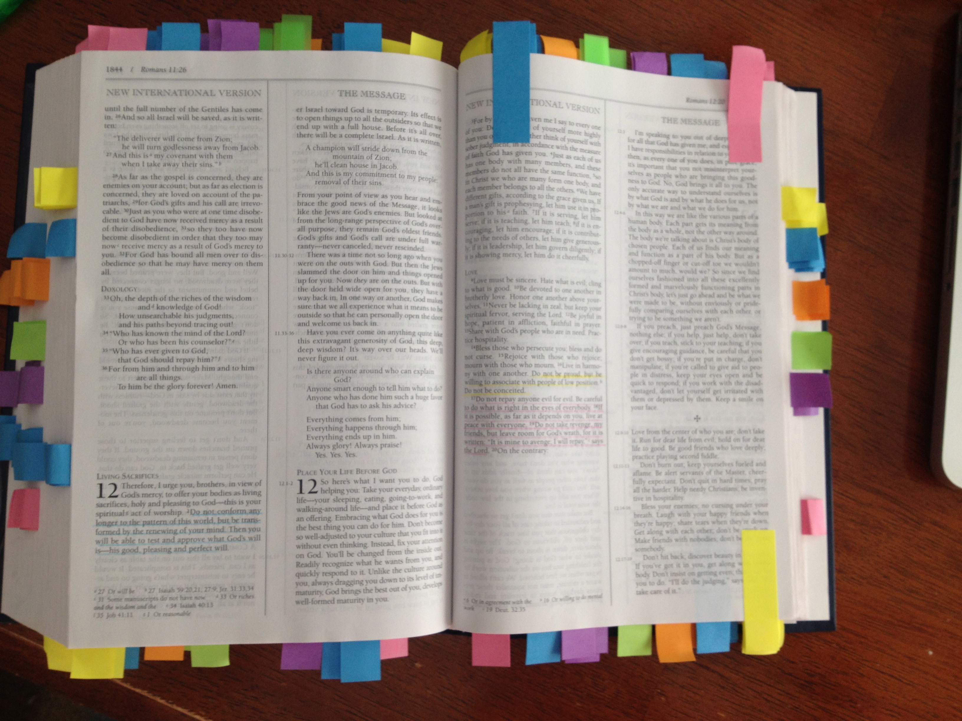 Literally days before I stumbled upon this idea, I noticed an NIV/Message Parallel Bible that I had purchased a few years ago lying on a shelf here in our office practically untouched.